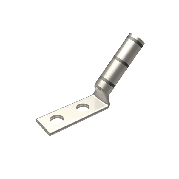 Burndy: #4 Flex Lug, 45 Degree, 2 Hole, 1/4" Stud, 5/8" Spacing, Window, Long Barrel, Gray