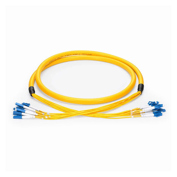 RF Industries: LC/UPC to LC/UPC, 24 Fibers (with 36in 900um Breakout Length), Indoor, Singlemode, Yellow, Simplex, OFNP, 15 Meters